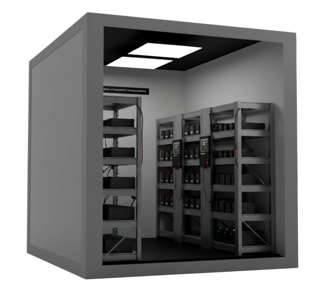 Las salas de carga independiente, ofrecen un nivel extra de protección: cada batería se carga en compartimentos aislados, evitando que un fallo o incendio en una unidad se propague a las demás.